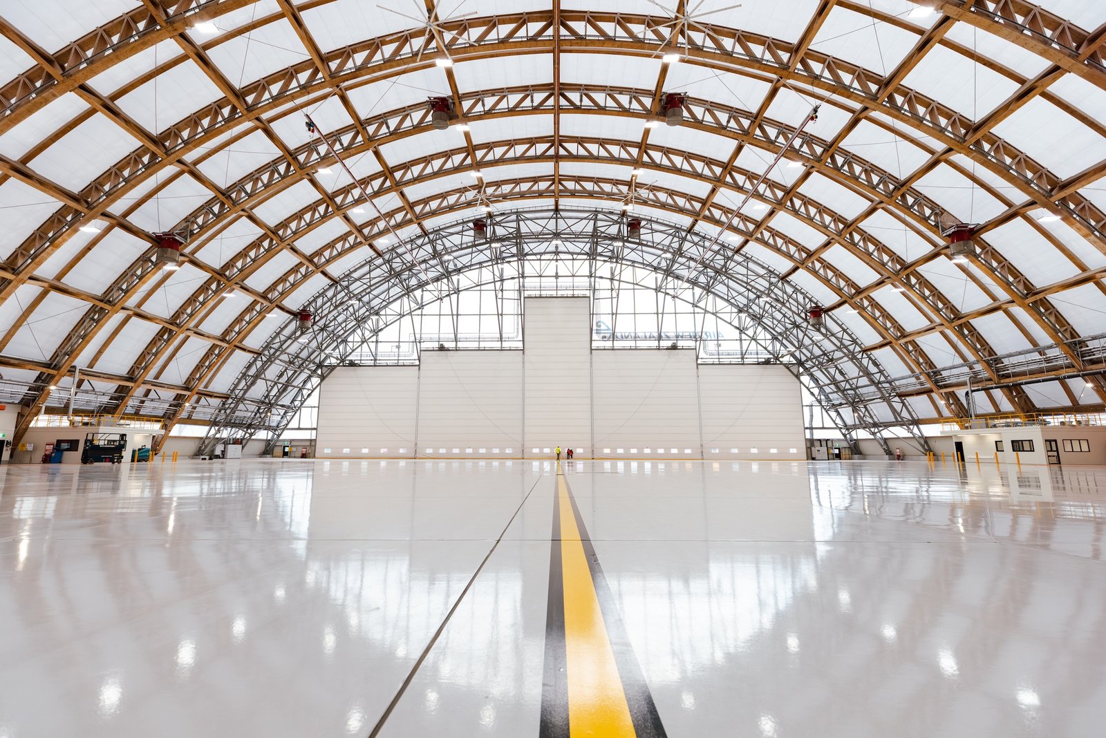 Hangar 4, which is targeting a 6 Green Star Rating from the New Zealand Green Building Council, is the largest single-span timber arch aircraft hangar in the southern hemisphere. Timber was chosen for its lighter weight, ability to be sourced sustainably – from plantations in Nelson and Wodonga – and for its performance in a coastal environment.