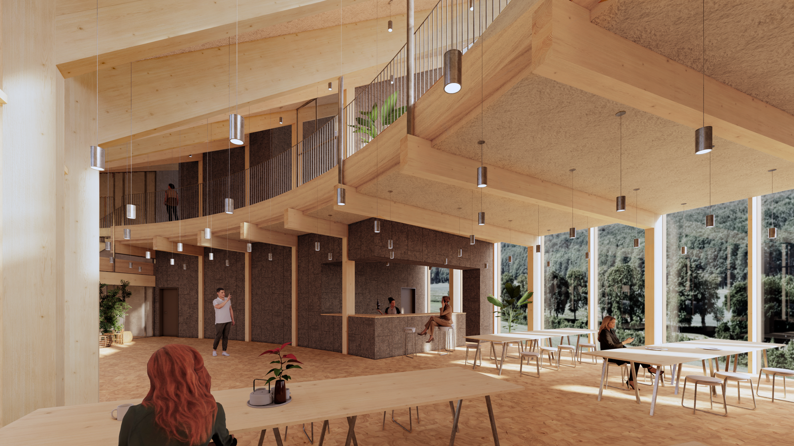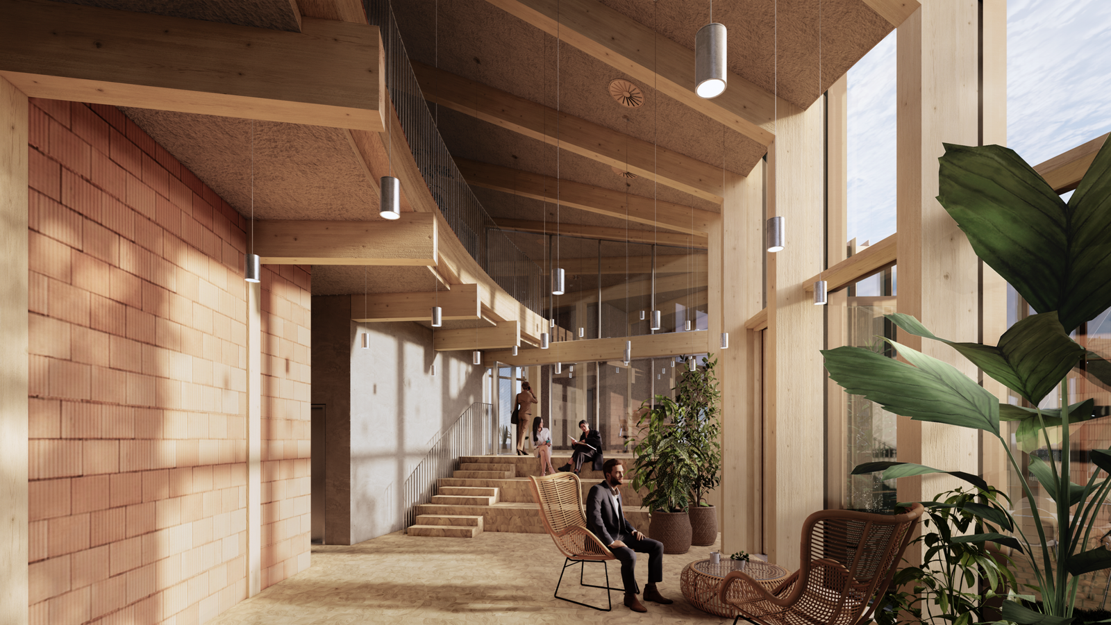 Set to achieve DGBN Gold and Heart Certification, the headquarters are characterized by a circular shape and a grid-like facade that references the Danish architectural tradition of half-timbering. The facade consists of a series of 44 radial cross-laminated timber (CLT) frames, topped with an undulating roof covered in 880 PVCs, which are angled for harvesting solar energy throughout the year as well as reduce noise pollution for an inner open-air green courtyard.