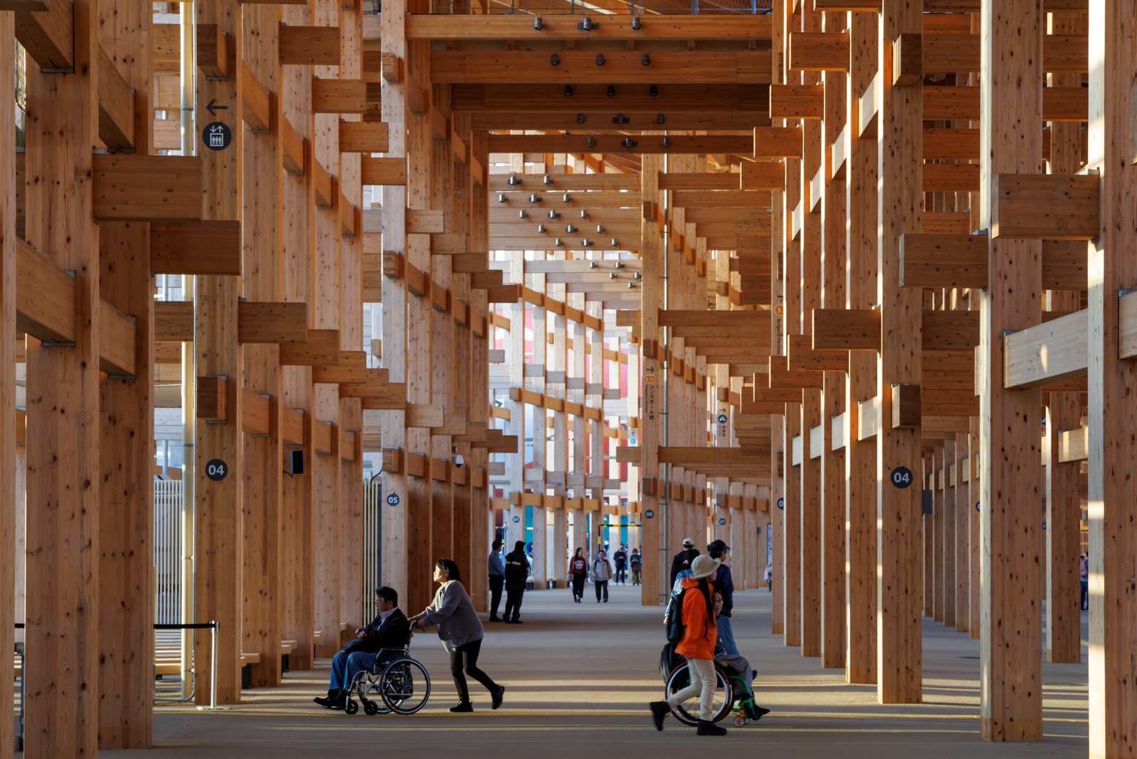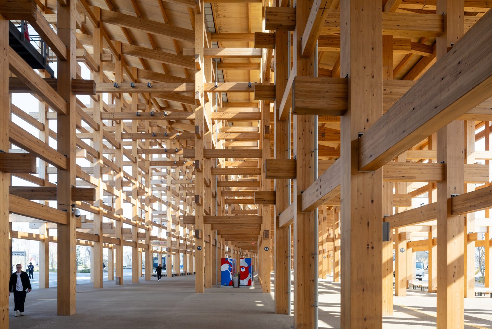 Such a large-scale wooden building was unprecedented. It took the architects a lot of time to conduct feasibility studies, including structural calculations, fire prevention measures, and numerous technical issues, as well as timber procurement, schedules, and costs. At the end, the architects opted for a modular, dismantlable wooden structure that marries modern and traditional construction techniques, such as Nuki joints – a Japanese connection in which a horizontal beam is slotted through a vertical post, often seen in traditional temples and shrines.