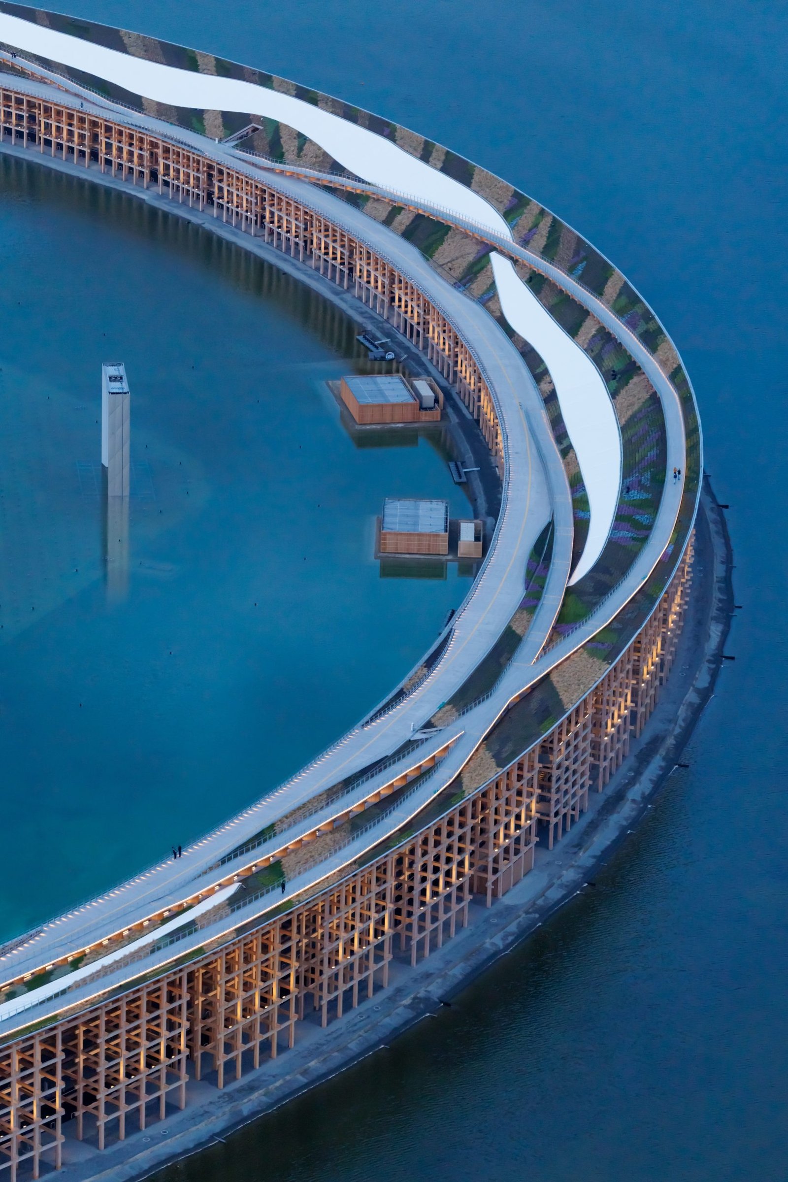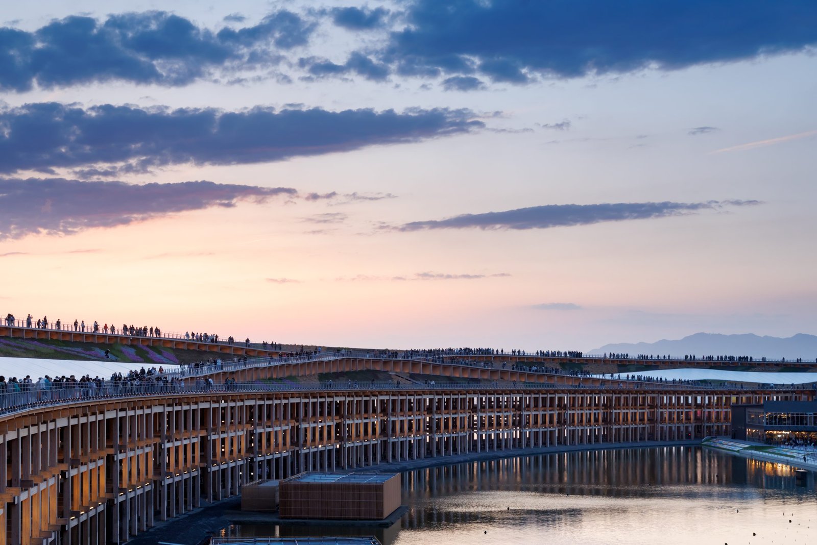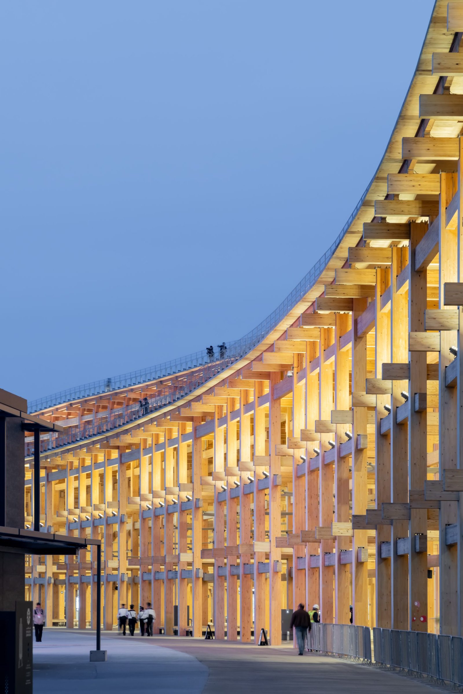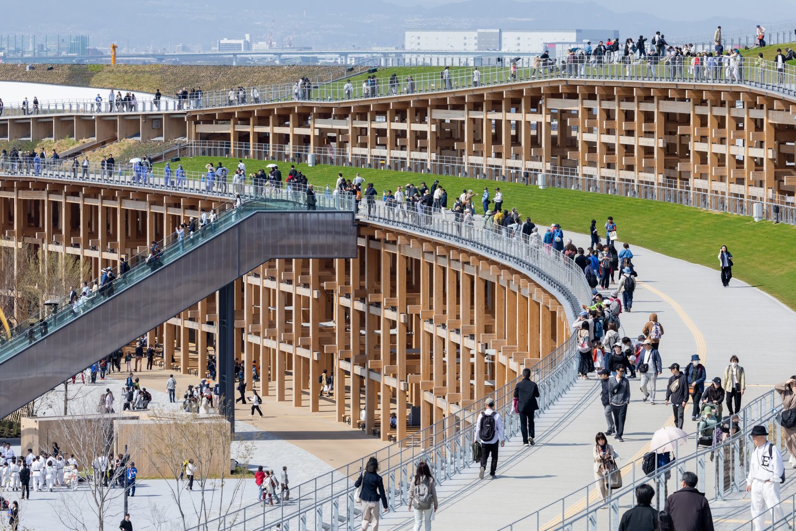 Recognized as the ‘largest wooden architectural structure’ by the Guiness Book of World Records in April of this year, The Grand Ring is the symbol of Expo 2025 Osaka, Kansai, Japan and expresses the concept of ‘Unity in Diversity’. Designed by Sou Fujimoto Architects, the structure has a building area of 61,035.55 sqm, a height of 12m (approximately 20m on the outside) and an inner diameter of approximately 615m. The Grand Ring is a symbolic gateway, welcoming visitors from all over the world, and embodying the desire of visitors to experience the philosophy of the Expo.