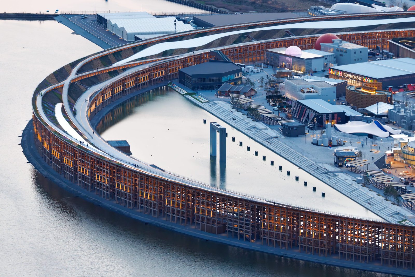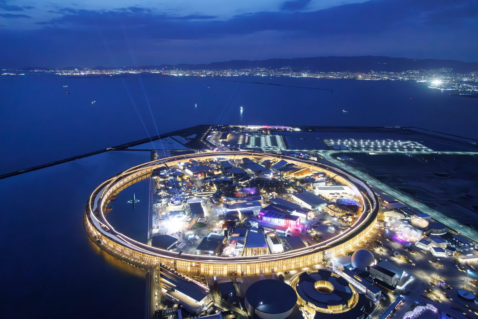 According to the architects, it incorporates their wish that visitors will be able to experience unity in diversity and one world shared by innumerable diversity. More importantly, the Grand Ring serves as a leading front line for people from all over the world to come and go, communicate, interact and look toward the future and, at the same time, it aims to serve as a comfortable space that blocks people from rain, wind, and sunlight.