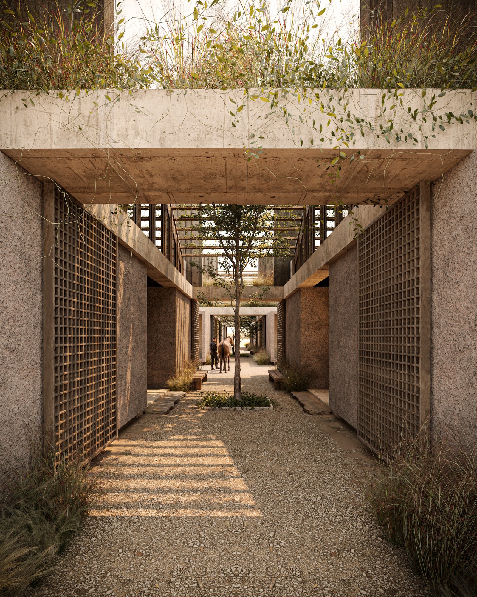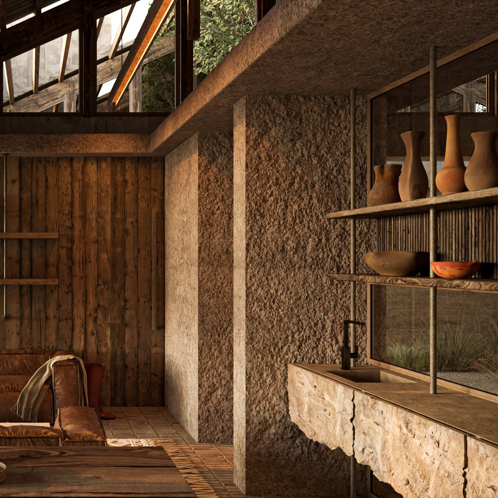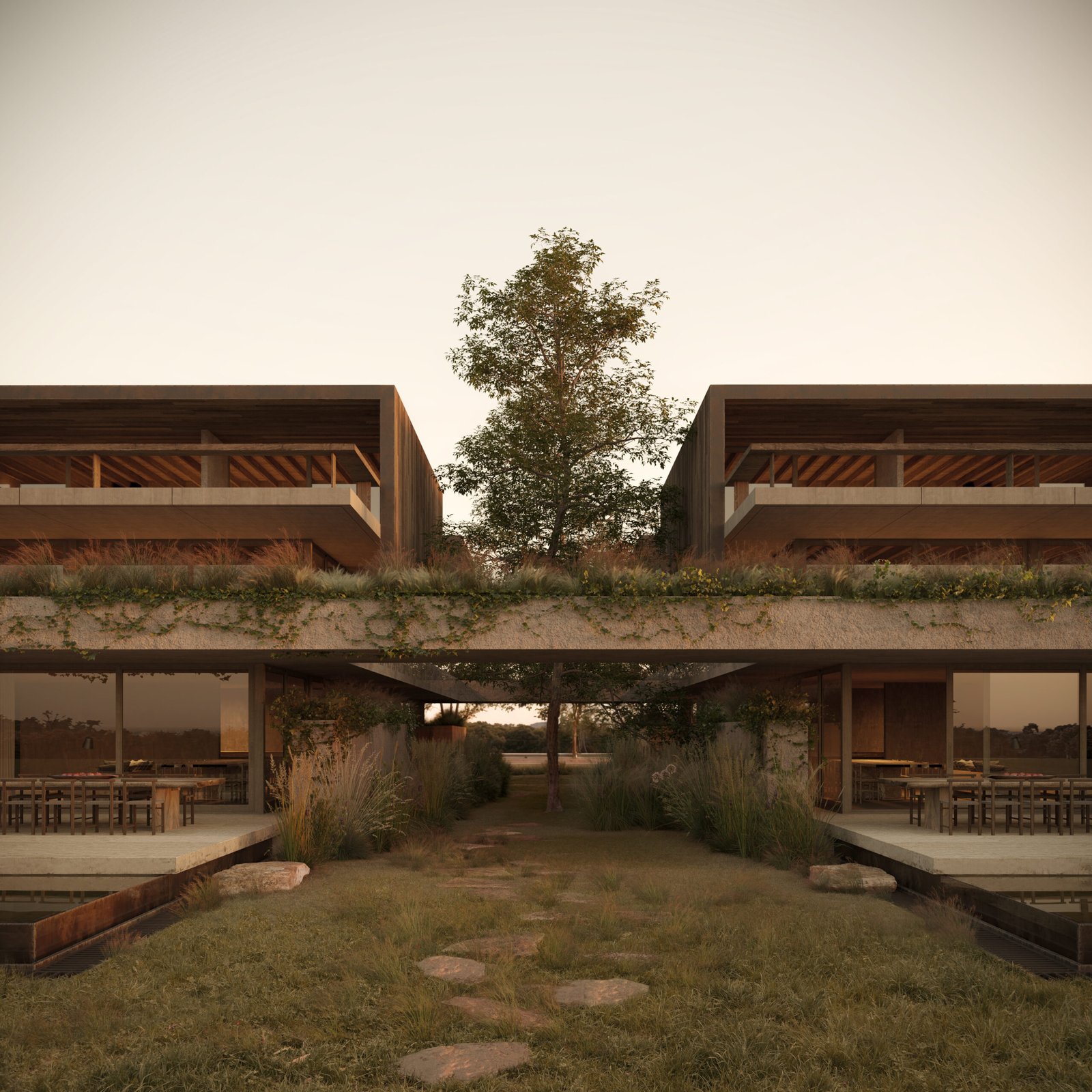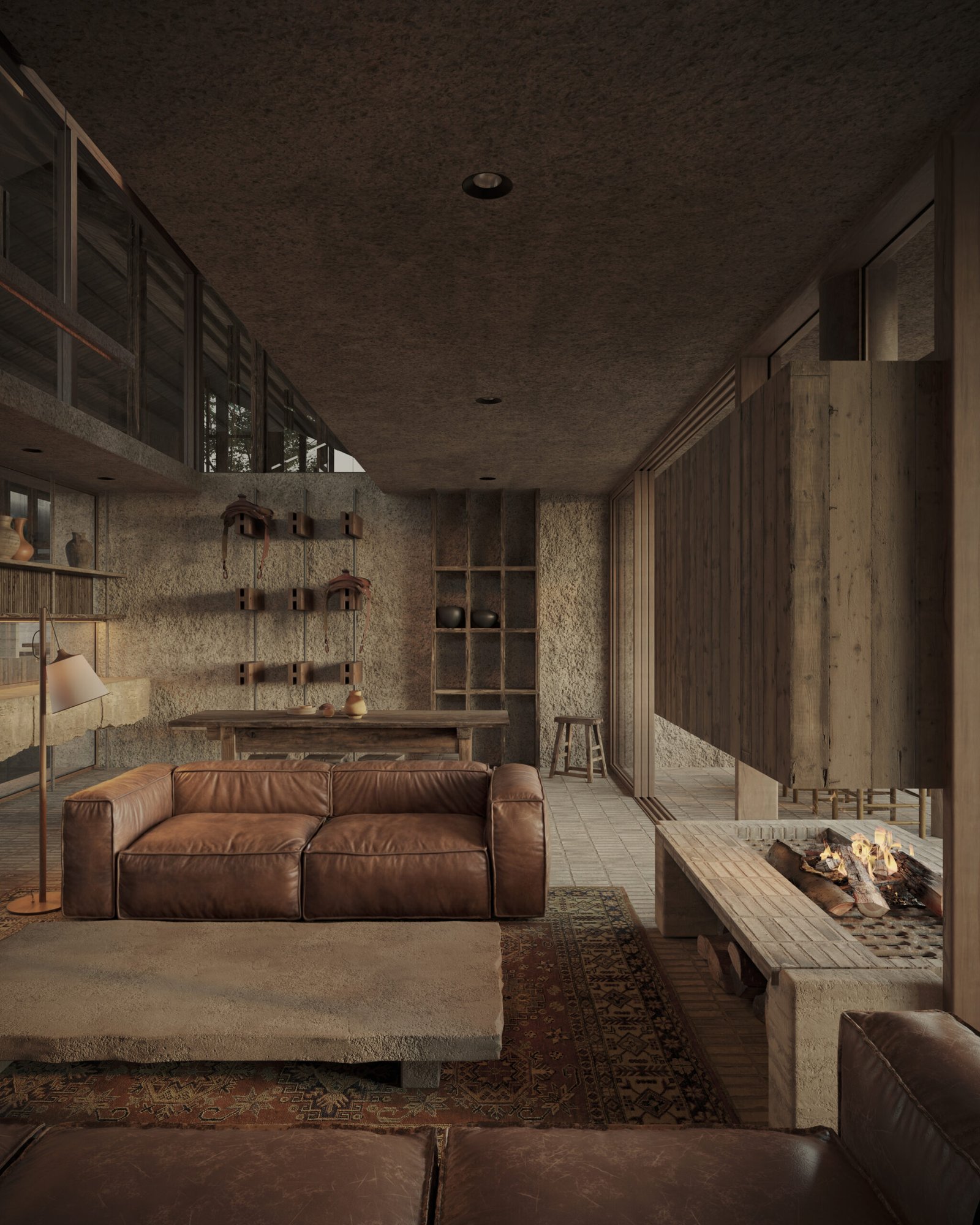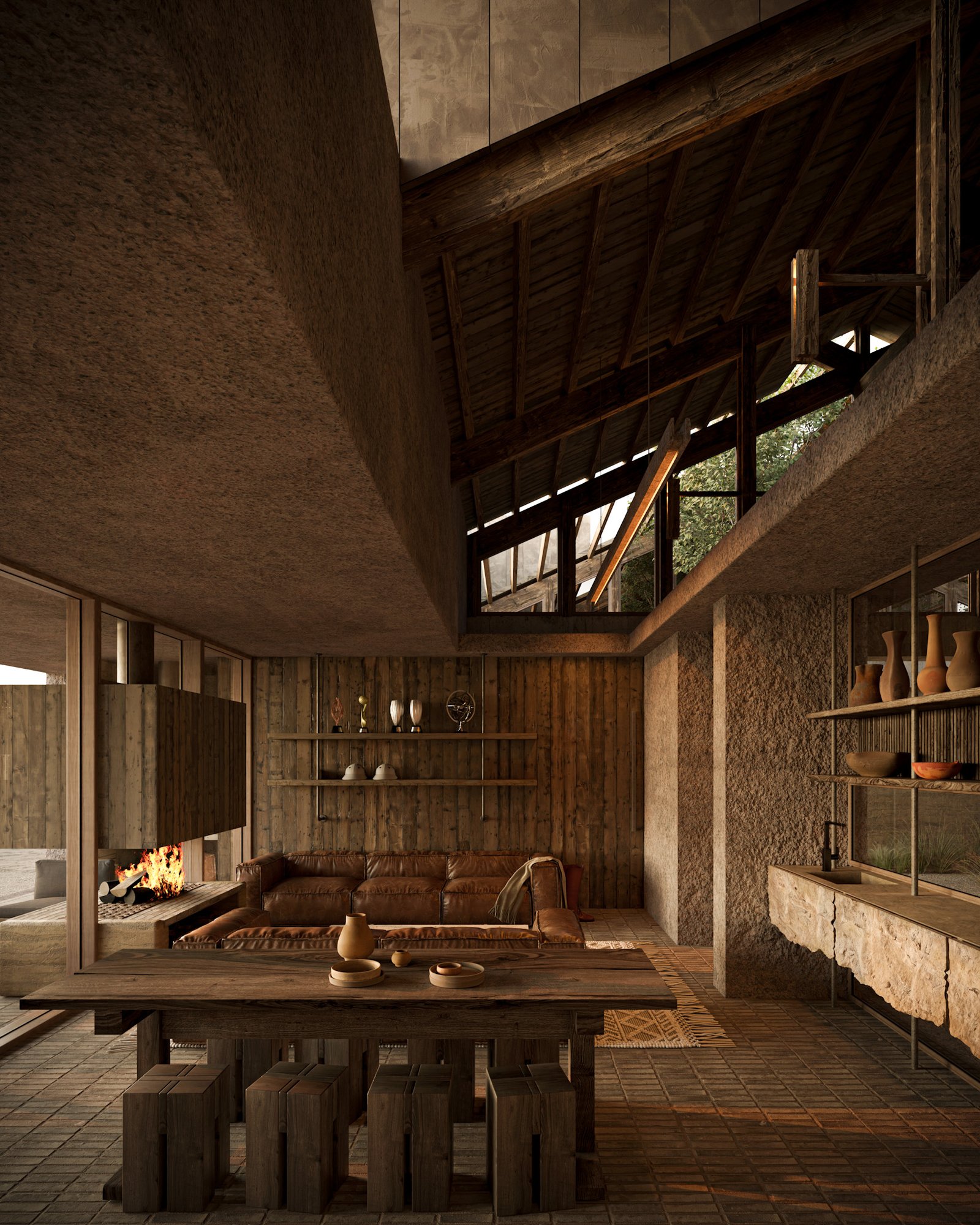 Fire – both as gesture and as space – is a central axis of the project. Present in the social areas of the stables as well as in the residences, it organizes moments of gathering, rest, and celebration. In this context, architecture not only provides shelter but fosters a collective, intimate experience deeply connected to the landscape.