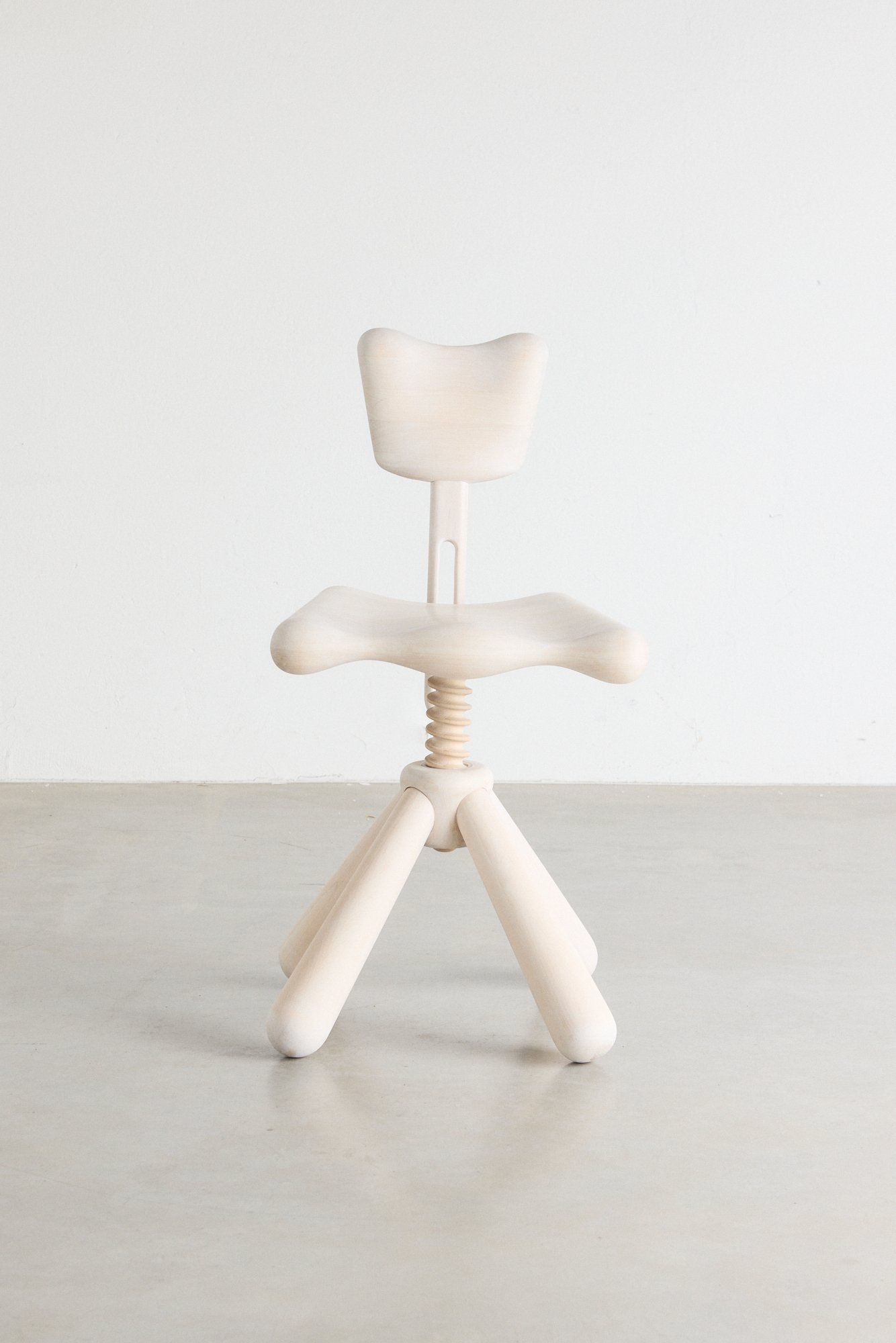 Presented at Stockholm Design Days, this ergonomic desk chair is crafted entirely from wood, including the large spiral screw mechanism used to adjust the seat height. Lundberg experimented with turned form studies and explored how mechanical details (usually made in metal) can be translated into wood. He worked at both large and small scales in order to find forms that are ergonomic yet sculptural.