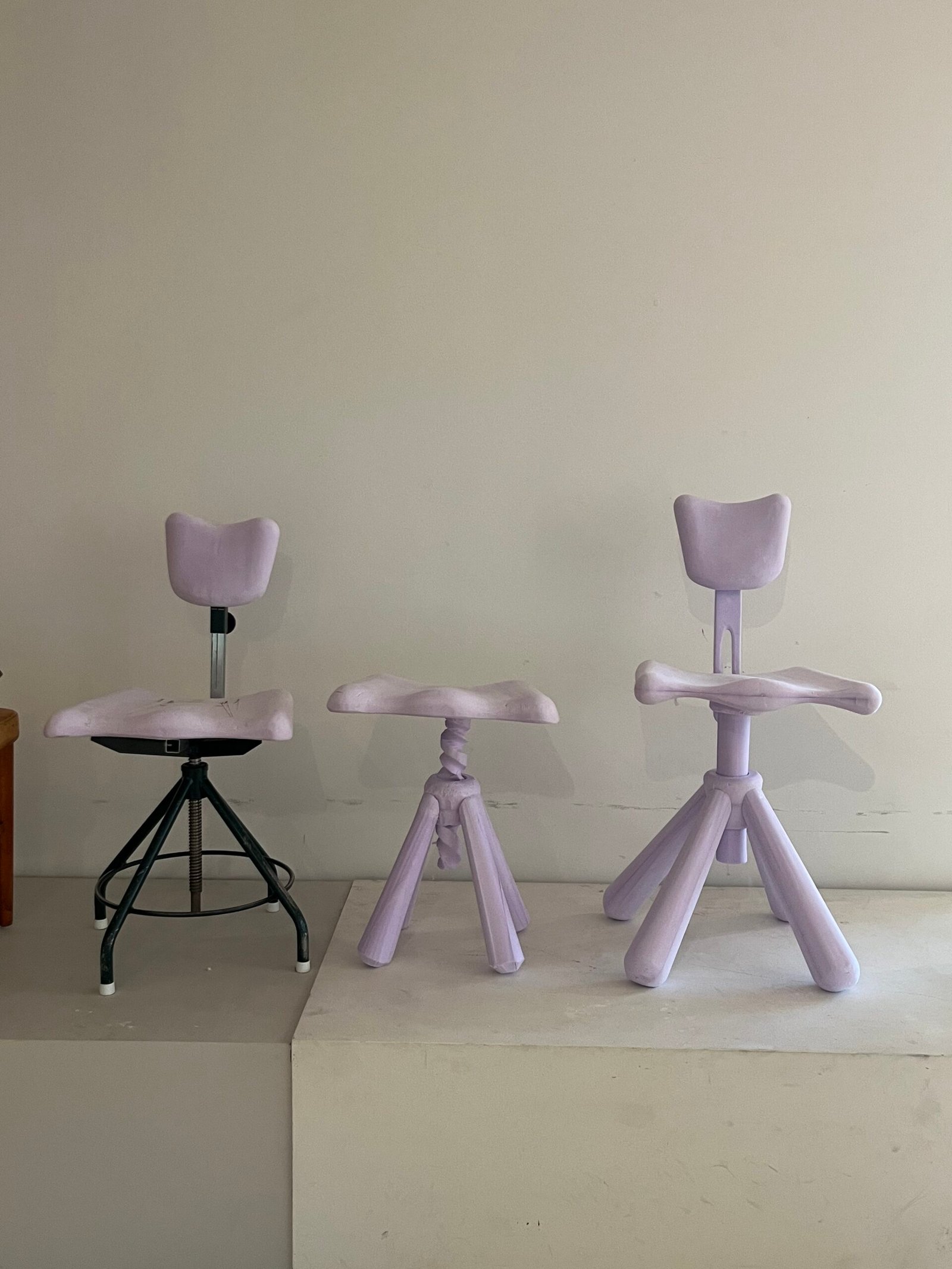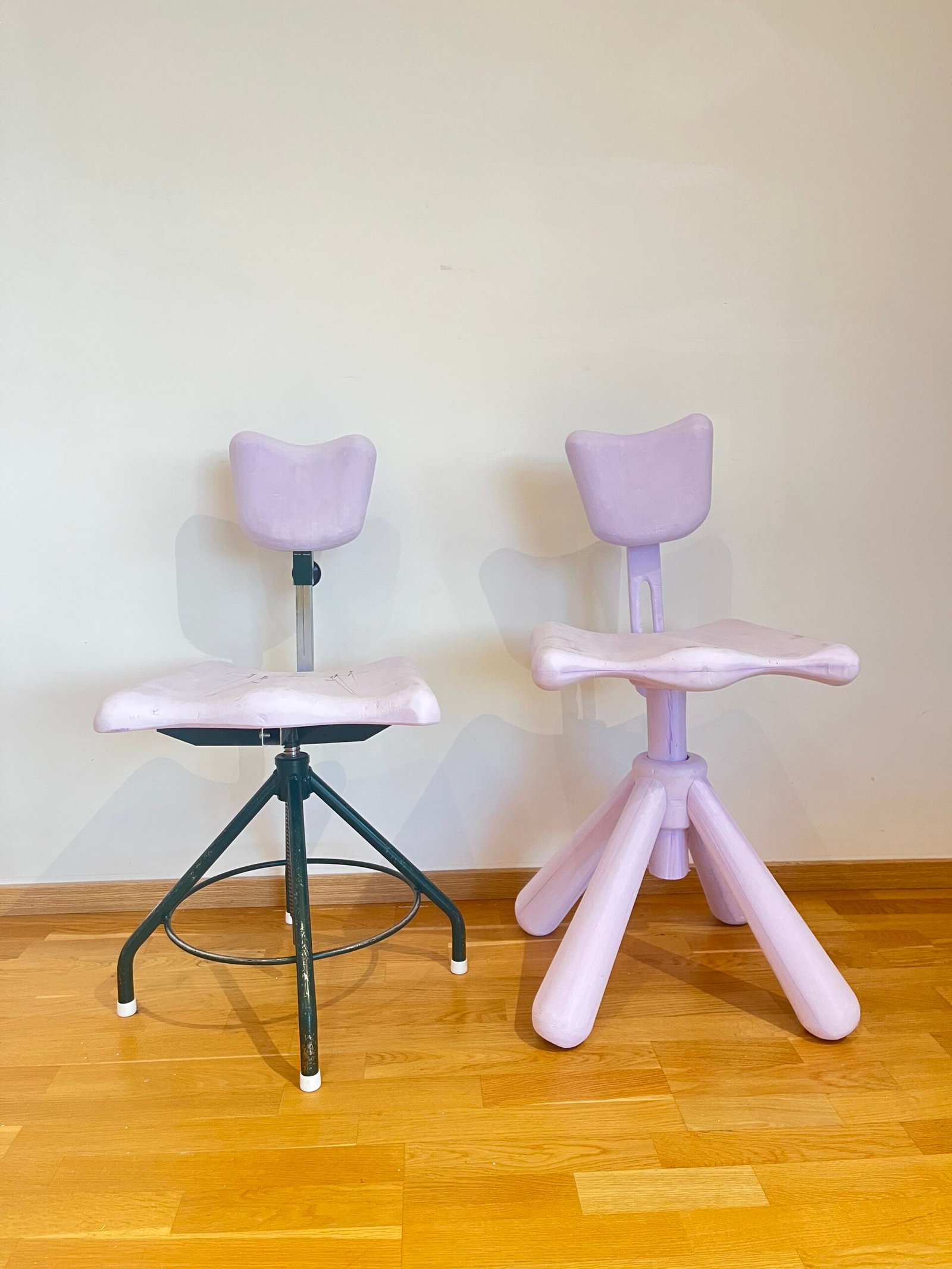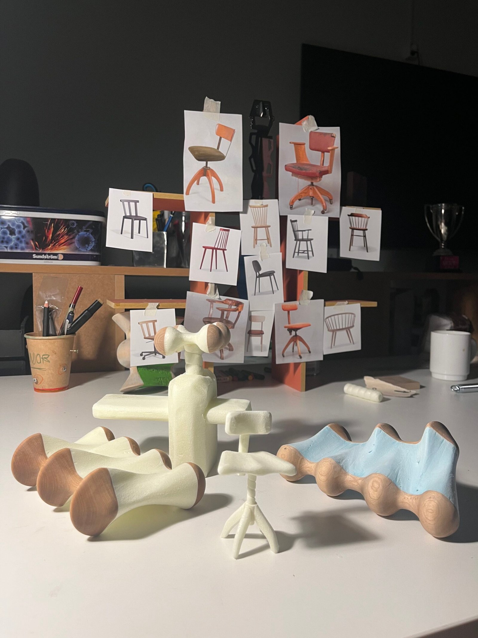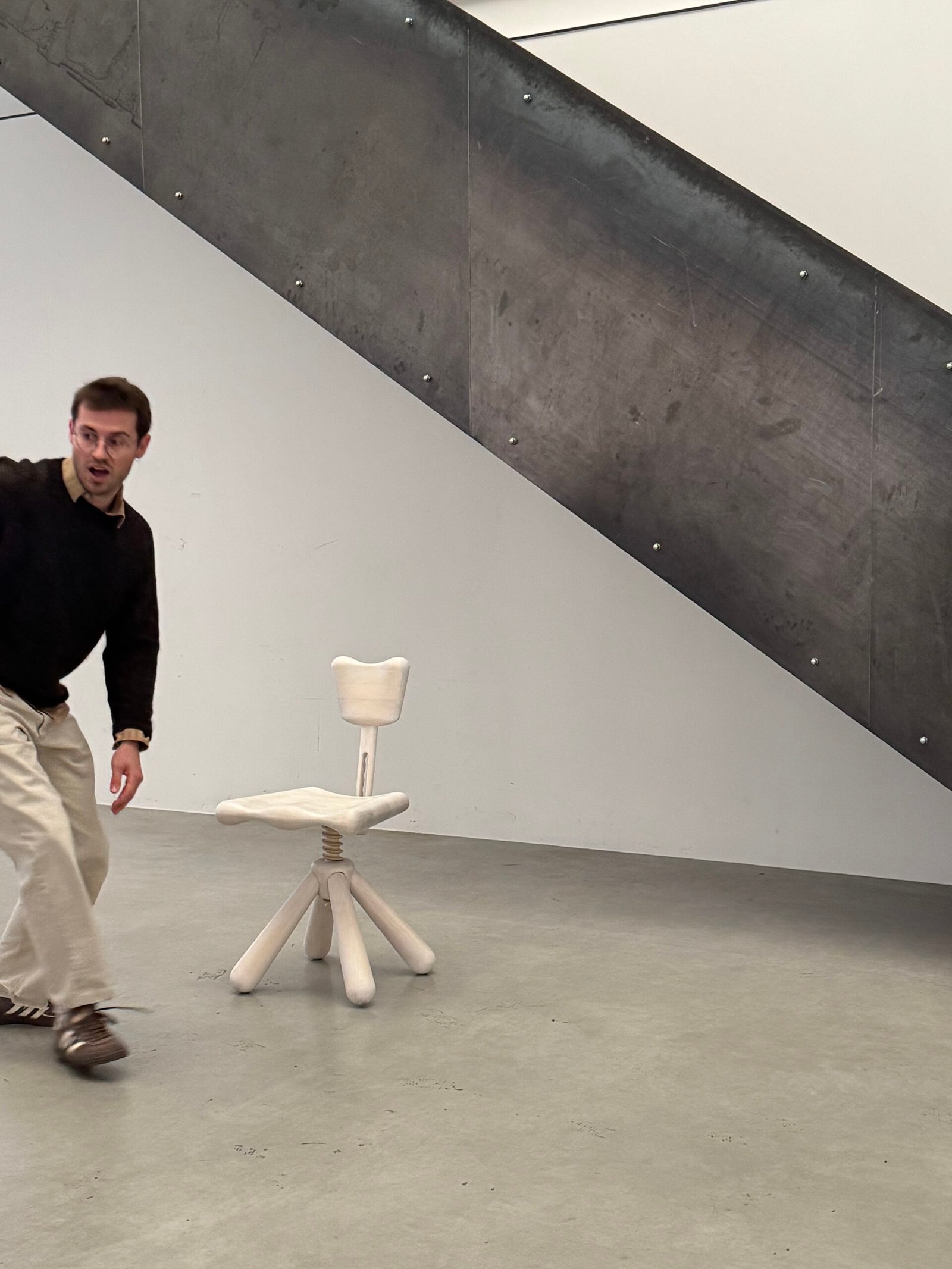 Crafting the giant screw mechanism that adjusts the seat height proved to be the most difficult aspect when working with timber. Given the high tooling costs, Owing to exorbitant tooling costs, Lundberg resorted to using a lathe to machine the bolt to millimeter precision, a task he described as ‘insanely hard’. The corresponding nut in the base of the chair was fabricated using 3D printing technology with plastic, serving as a proof of concept.