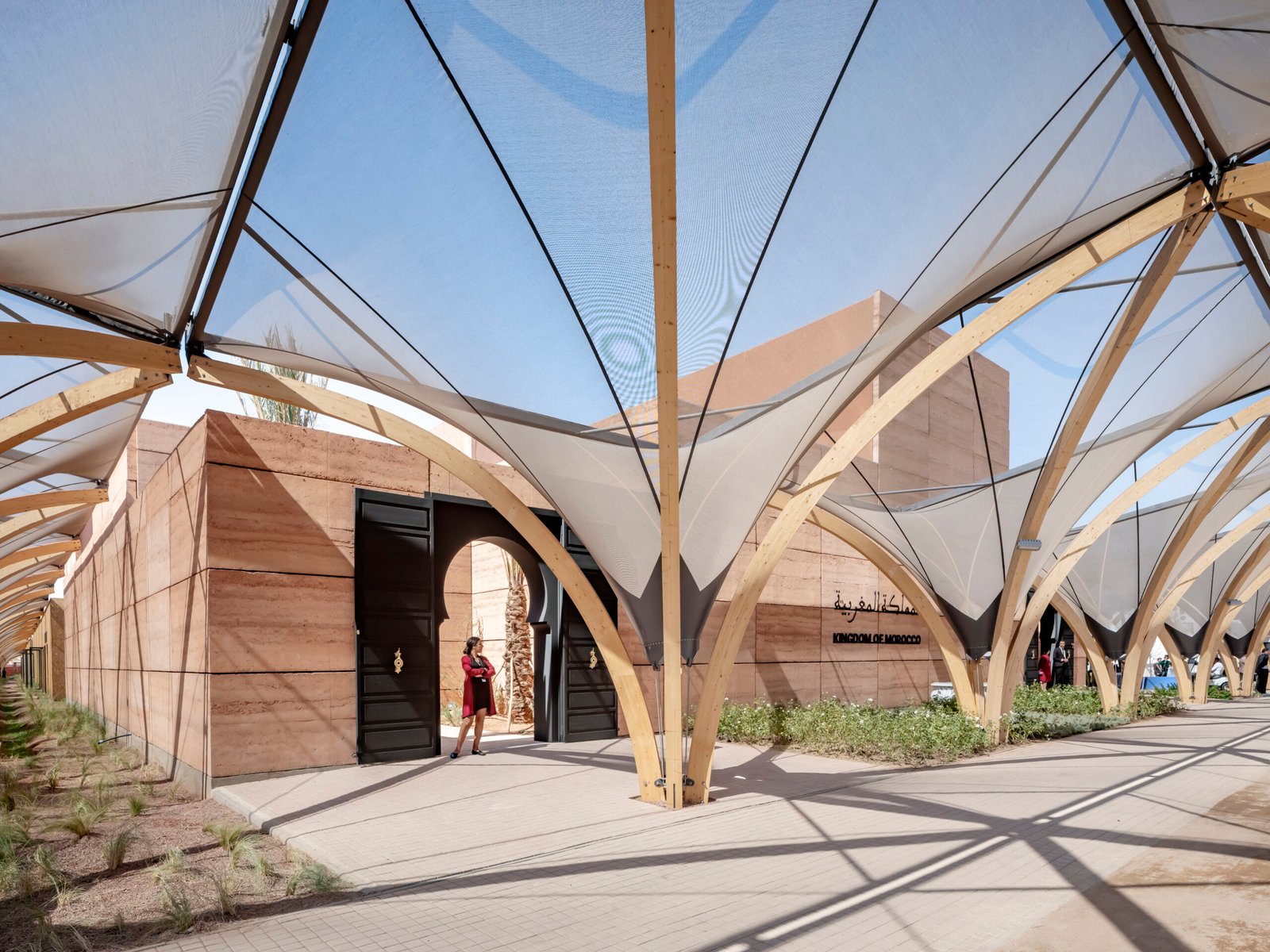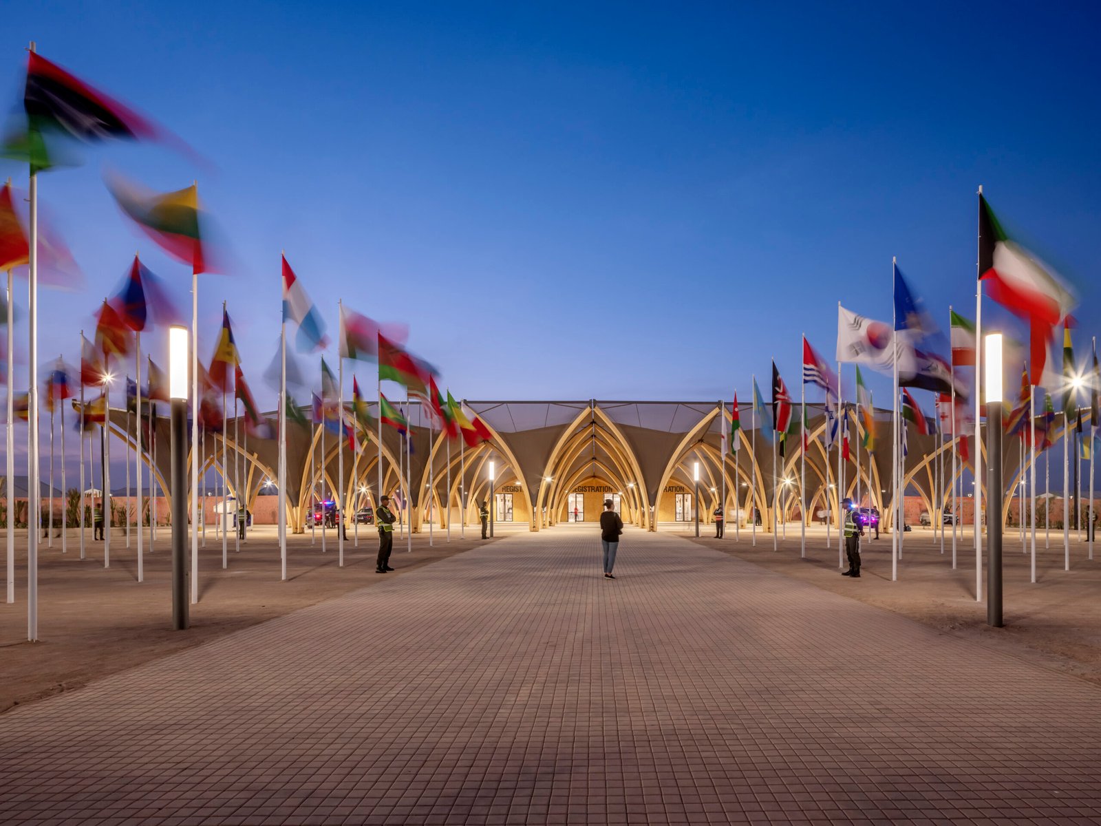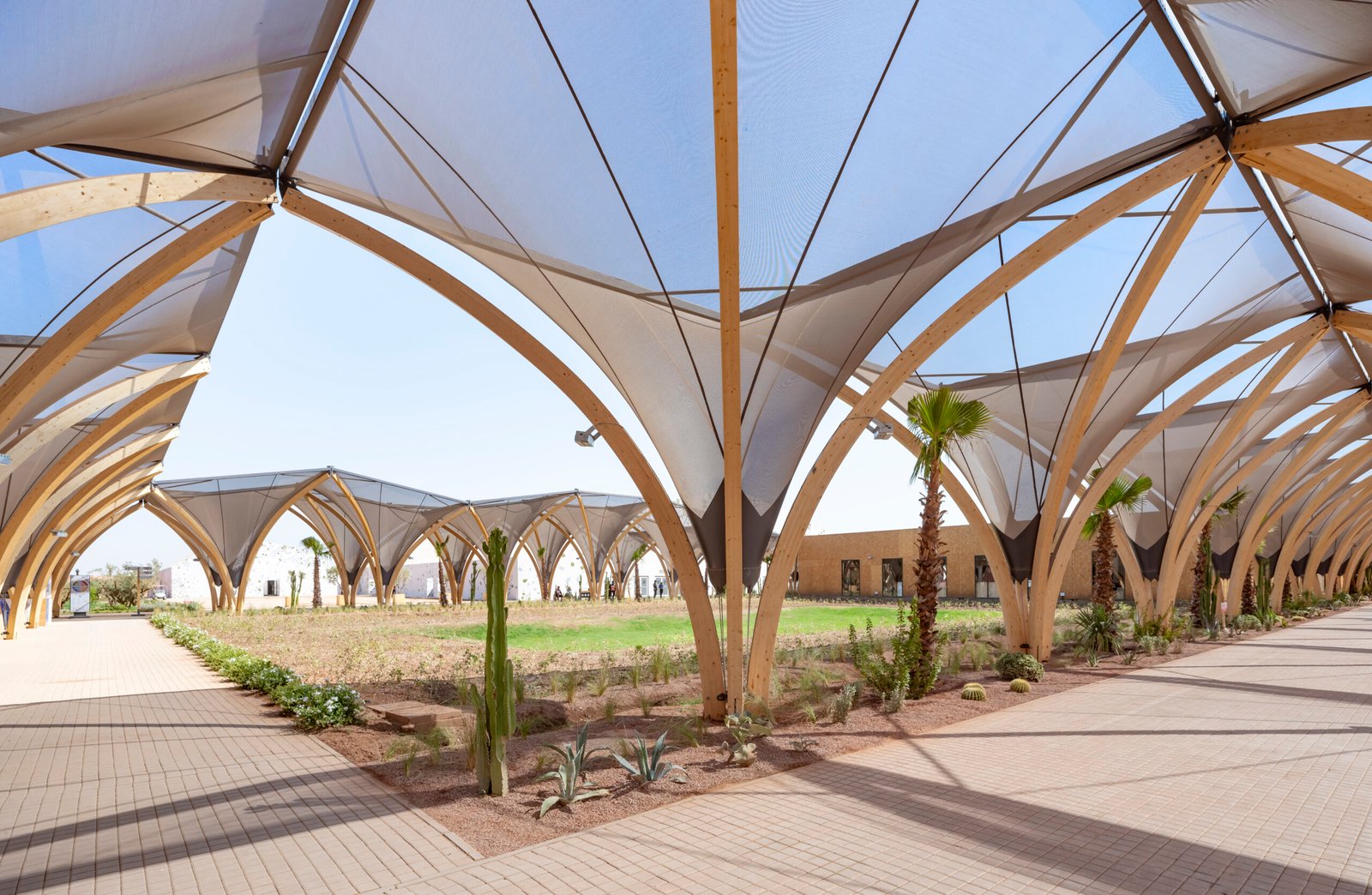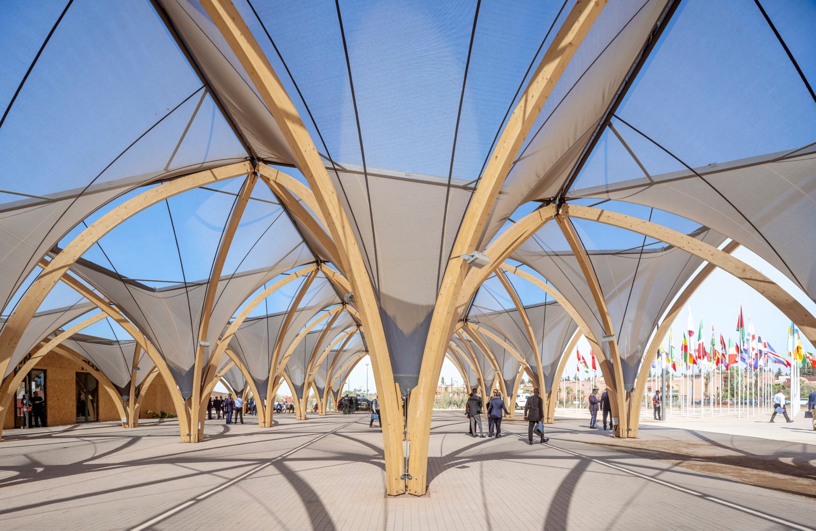 The 650 office spaces for the delegates were housed in wooden structures which will be repurposed after the event. All of the 48 wooden structures will be dismantled, transported, and readapted as educational buildings in Morocco.