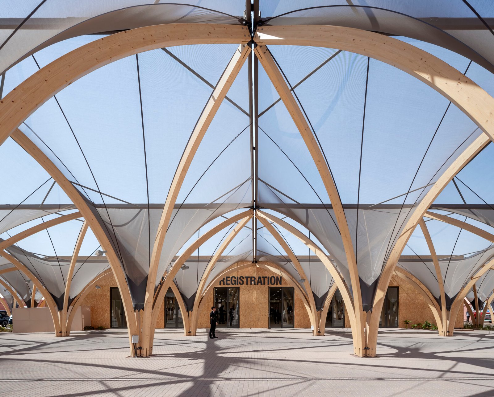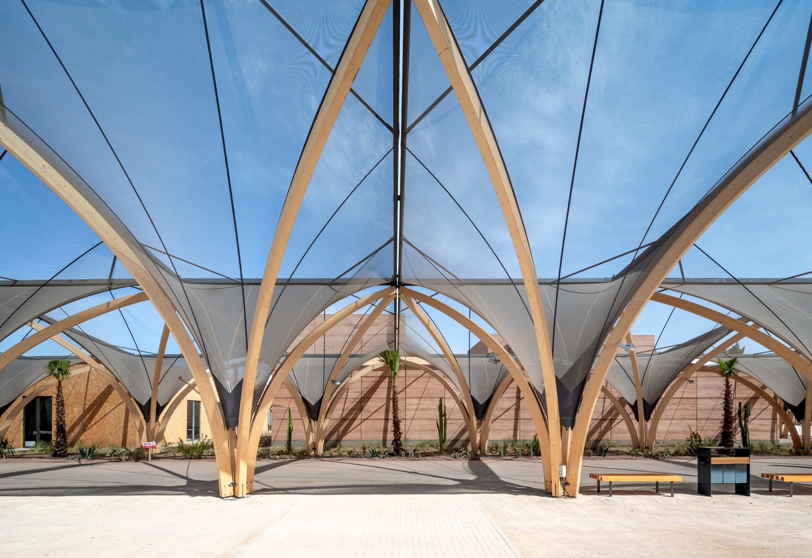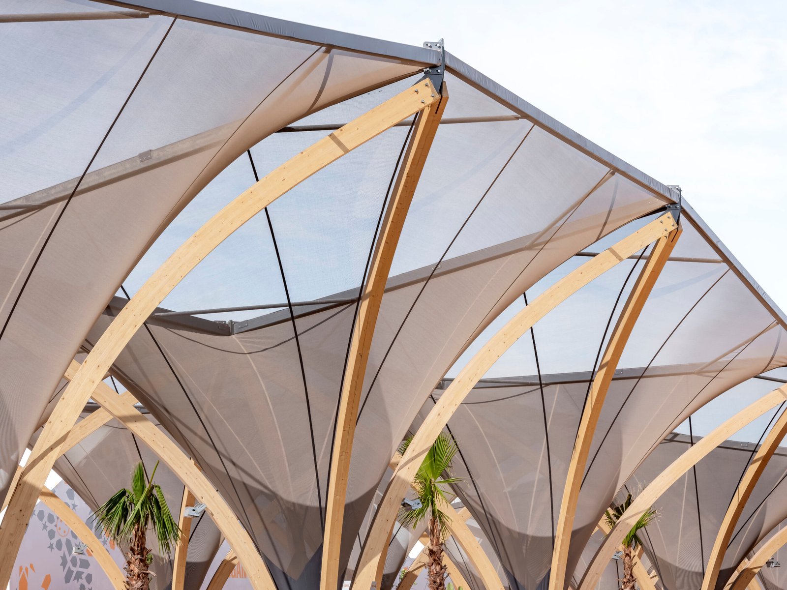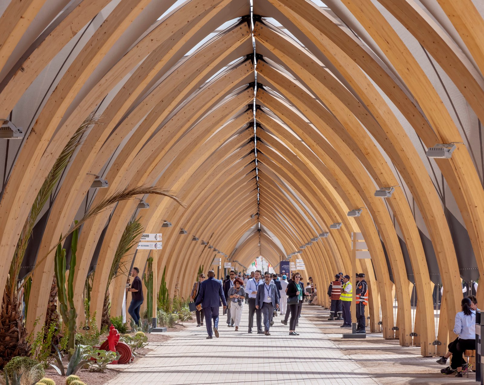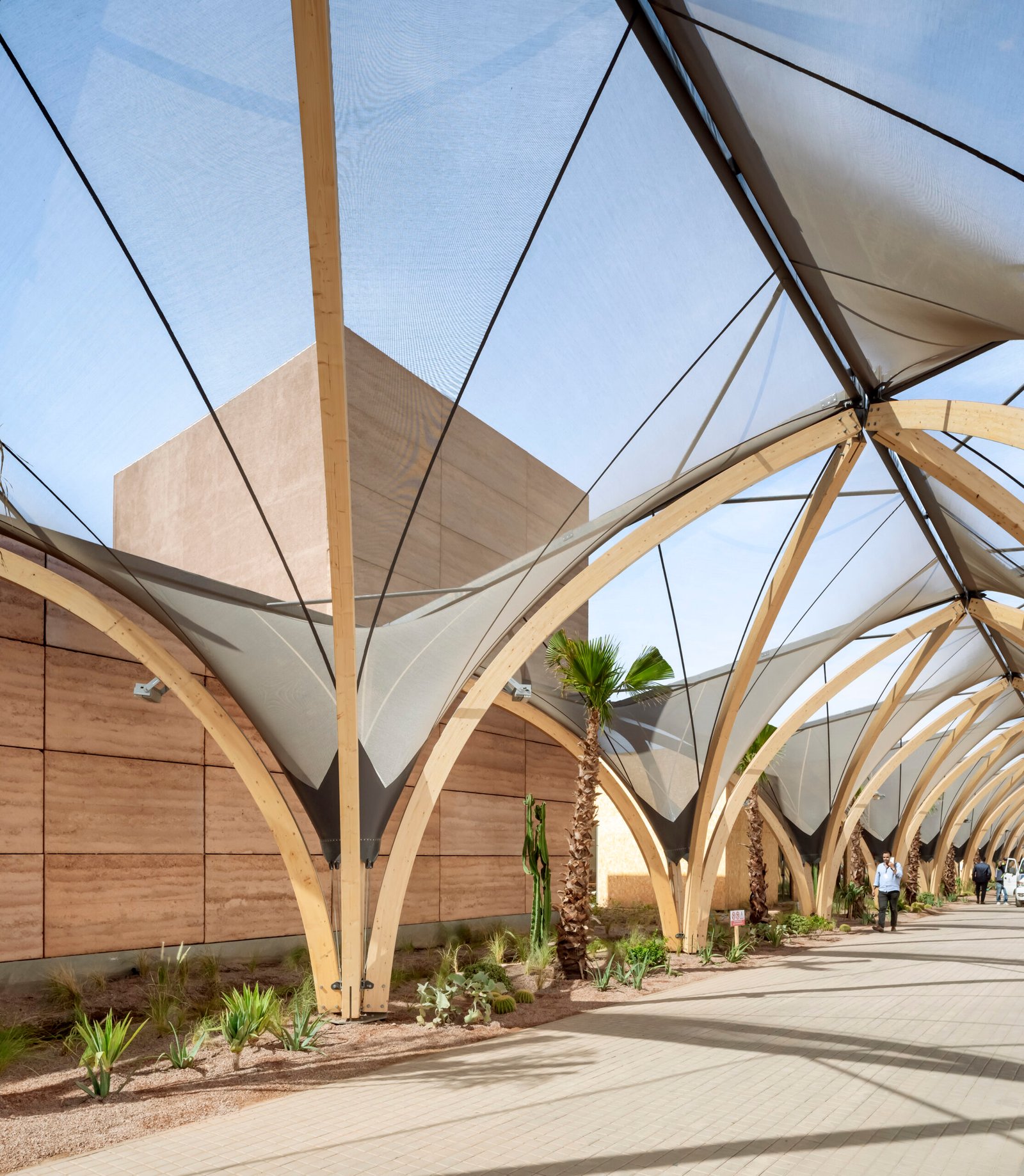 The 650 office spaces for the delegates were housed in wooden structures which will be repurposed after the event. All of the 48 wooden structures will be dismantled, transported, and readapted as educational buildings in Morocco.