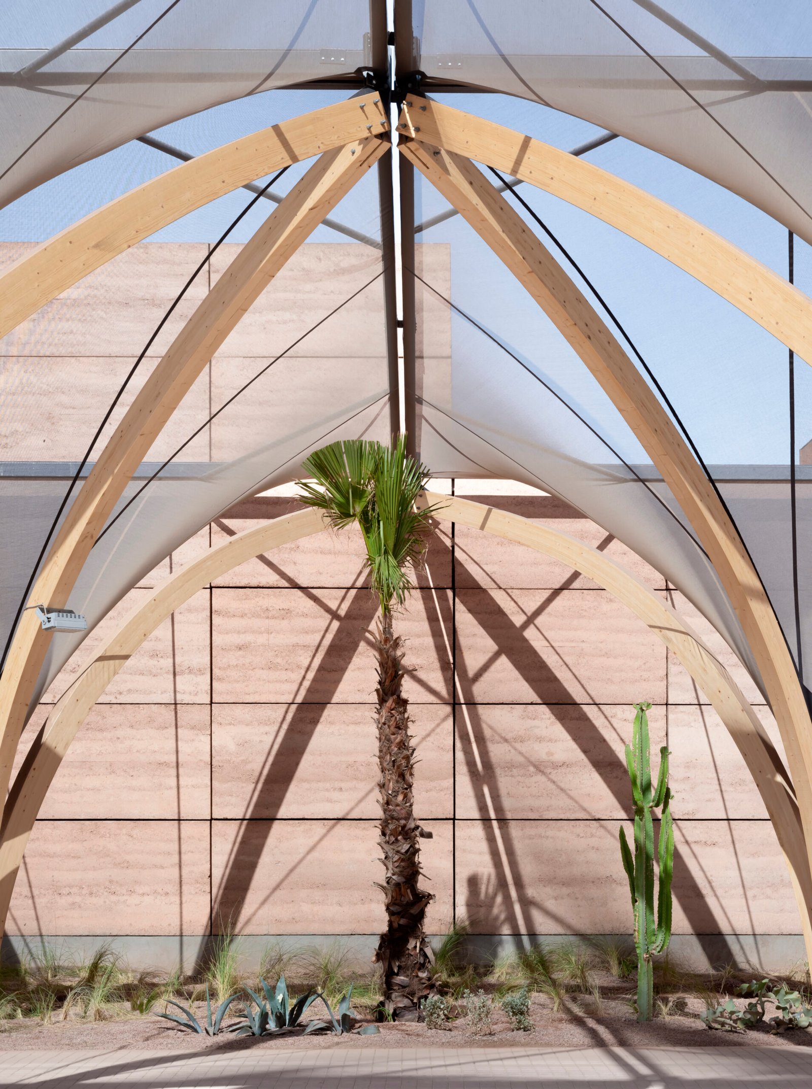 The grand canopy also divides the village into four neighborhoods in which the various event programs and offices are grouped. The identities of the four neighborhoods are inspired by various geographic and ecological regions of Morocco, and each quarter is planted with landscape that is indigenous to those regions. The result is a sensory journey through the multi-faceted landscapes of this enchanting nation.