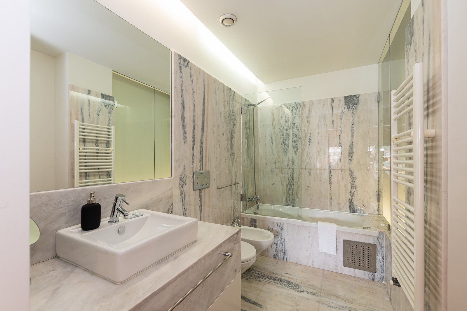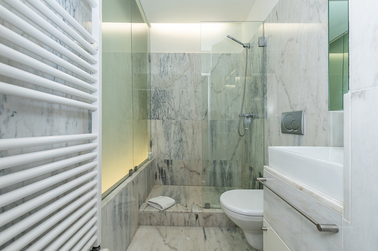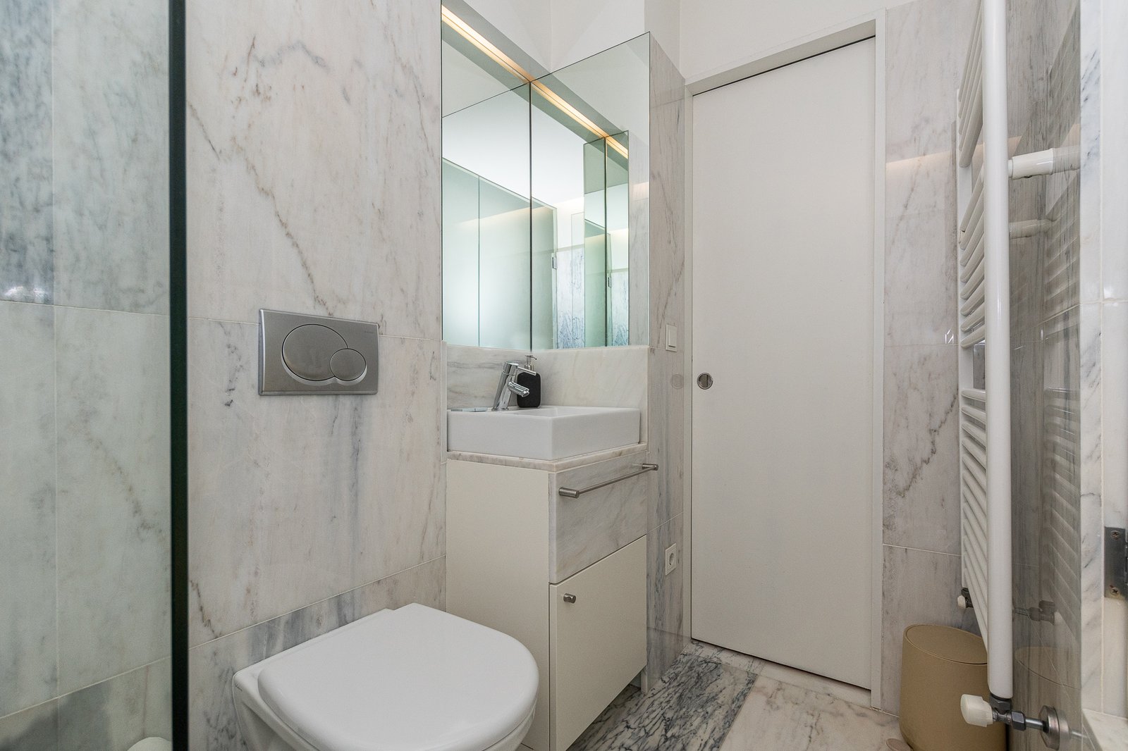 Throughout the space, architecture and interior design are inseparable. Custom cabinetry and built-in desks complement the structural rhythm of the building, while the original stone and wood act as tactile backdrops for contemporary living. Every room benefits from generous natural light and spectacular views, making this project not only an architectural intervention but an ongoing dialogue with the surrounding city and water. The duplex is a serene yet lively retreat – a poetic interplay between past and present, rooted in its setting and crafted with architectural intelligence.