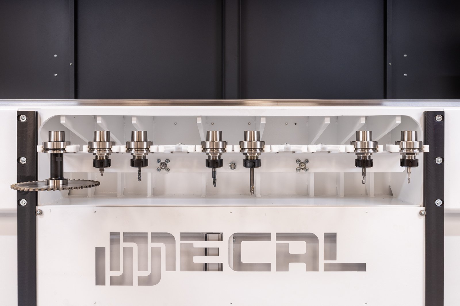 For the first time on display at the Technology Center in Rimini, the MC 307 Falcon by Mecal Machinery, a Group company. This 4-axis machining center for aluminum, PVC, and steel profiles ensures high precision and productivity. It is the fastest in its class (up to 150 m/min) and stands out for its flexibility in machining aluminum profiles for both fenestration applications (doors, windows, façades) and furniture components (kitchens, wardrobes, office partitions, etc.).