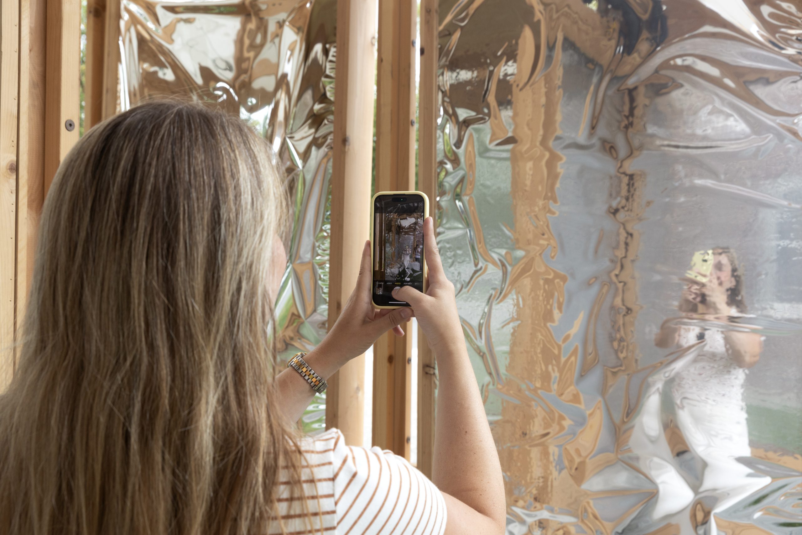 The first KlimaKover shelter is open to the public on Governors Island in New York through November 2025. Built from modular panels, the system can be scaled to suit a variety of urban settings.