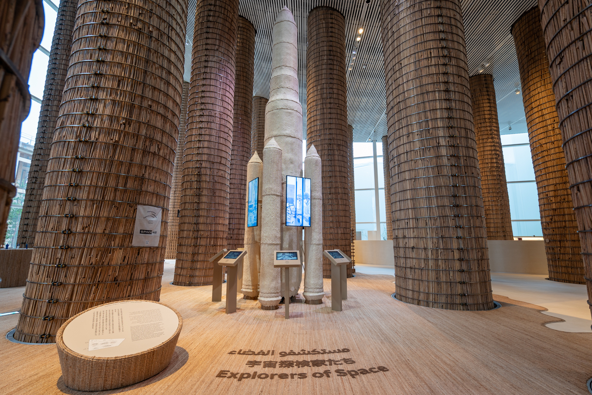 The UAE Pavilion at Expo 2025 Osaka, Kansai is a testament to global collaboration, uniting Emirati, Japanese, and international expertise in a collective design process that fuses tradition with innovation. Drawing inspiration from the iconic date palm, the UAE pavilion reinterprets Areesh – traditional Emirati vernacular architecture – by integrating agricultural date palm waste with masterful Japanese woodworking expertise. The pavilion’s signature feature is a striking forest of 90 rachis columns, soaring up to 16 meters. Inside, visitors embark on a multi-sensory journey that celebrates the UAE’s explorers of space, catalysts of healthcare, and stewards of sustainability through immersive multimedia, art installations, and thoughtful interior design.