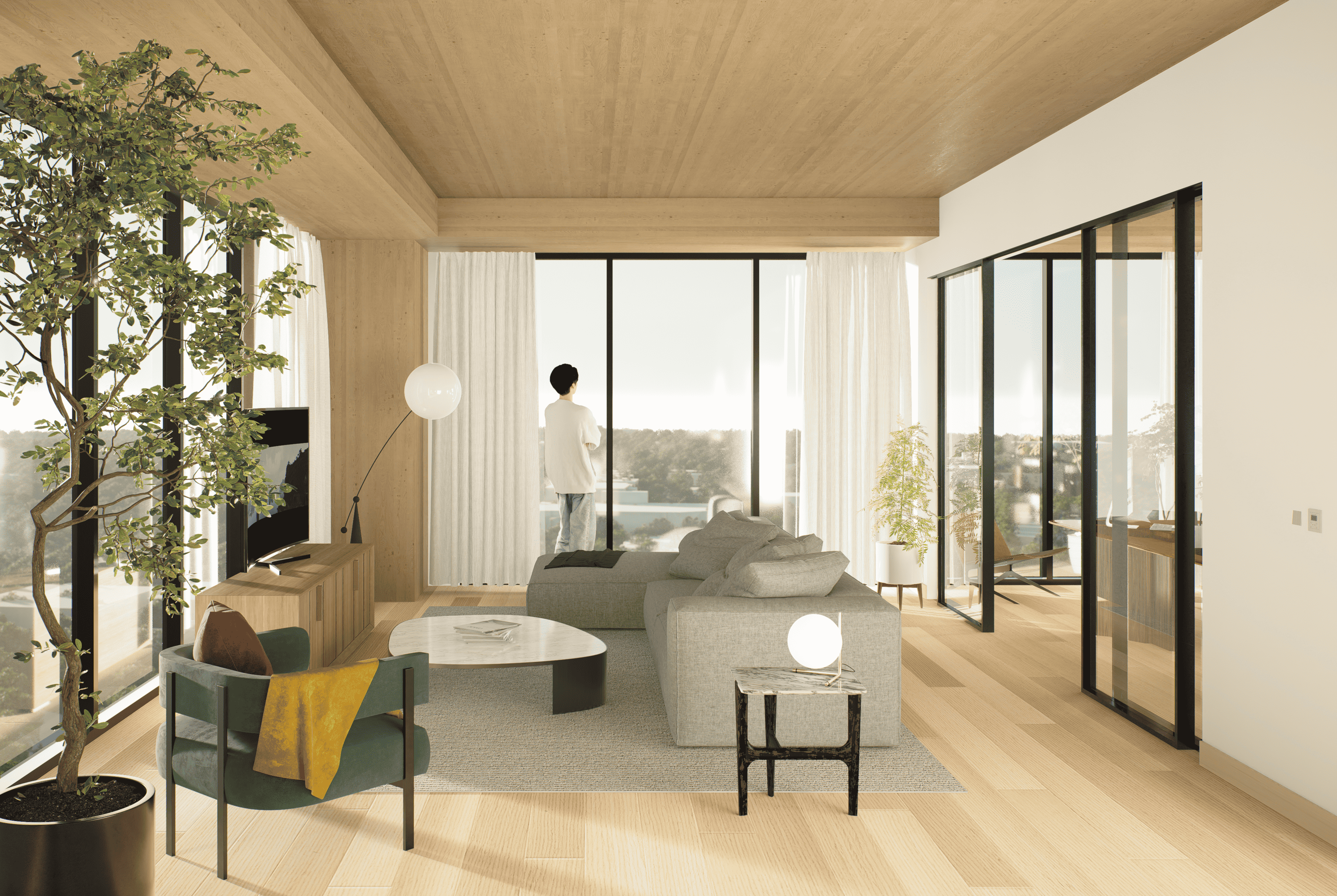 Wood is the best principal material available for building structures when considering total energy use, carbon emissions and water usage. As such, The Edison blends exposed mass timber with abundant natural materials and state-of-the-art ventilation systems, creating an environment that nurtures both resident well-being and environmental sustainability. The building’s materials are estimated to reduce embodied carbon footprint by 17 percent (without accounting for biogenic carbon) and 54 percent (with biogenic carbon), as well as reduce the operation carbon footprint and energy consumption by 45 percent compared to conventional buildings of the same typology and use.